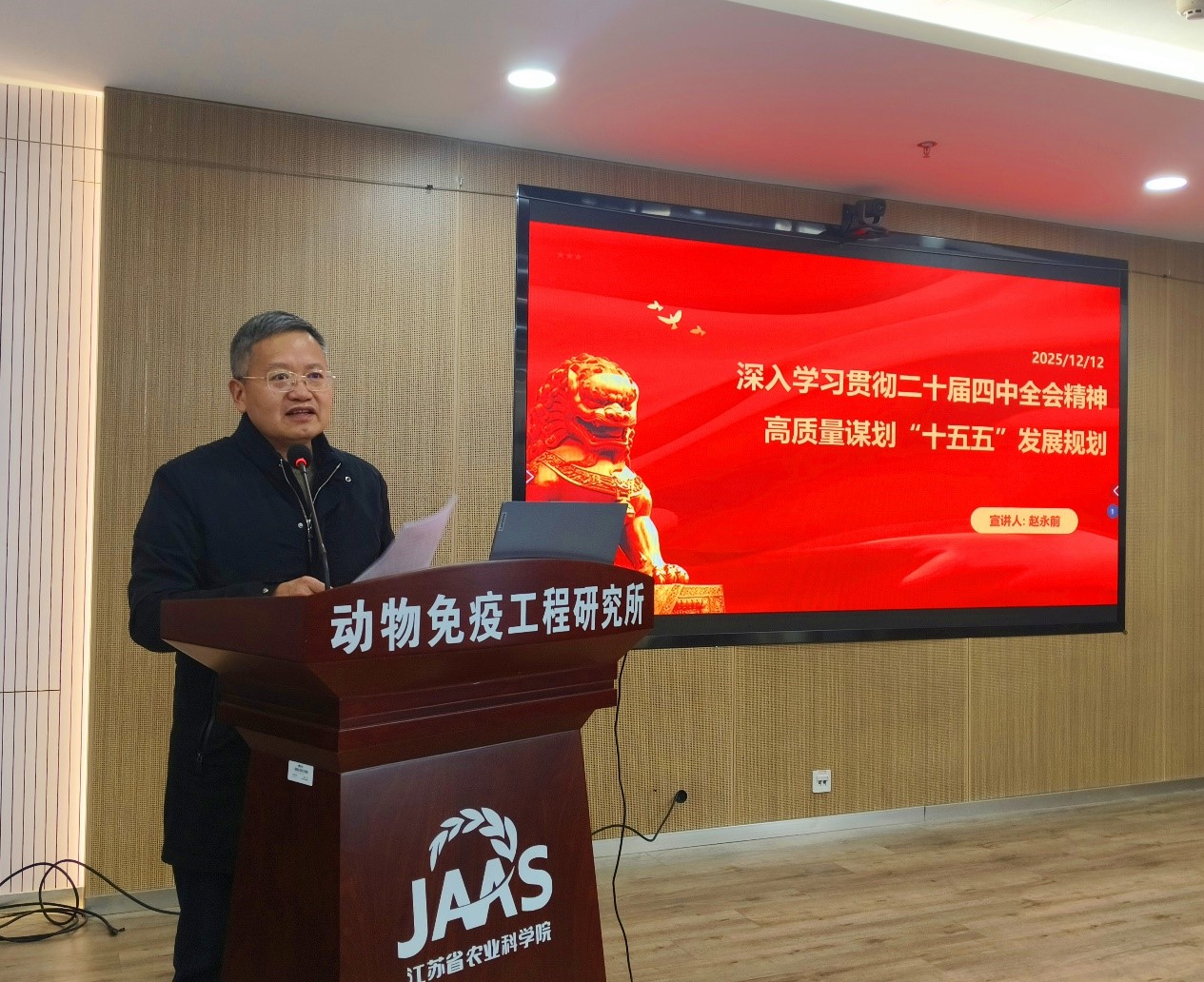 2025年12月12日,免疫所党总支组织召开专题学习会,深入学习贯彻党的二十届四中全会精神。会议由党总支书记、所长赵永前主持,全体党员参加。