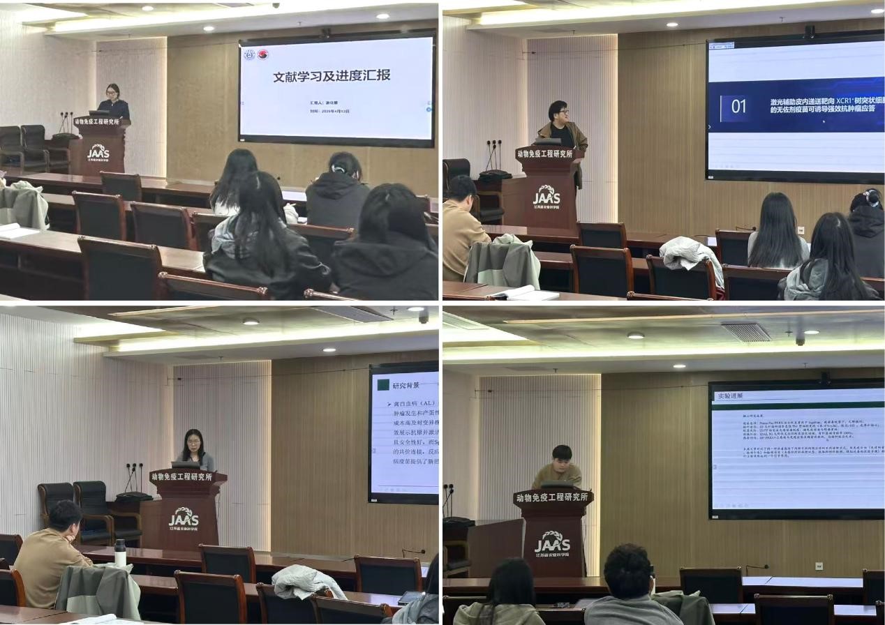 2026年4月13日,免疫所动物疫苗制剂工程创新团队研究生2026年度第二期学术研讨会顺利举行,团队在南京、泰州两地的13名硕士研究生全员参会,相关硕士生导师现场全程指导,助力研究生科研能力提升。