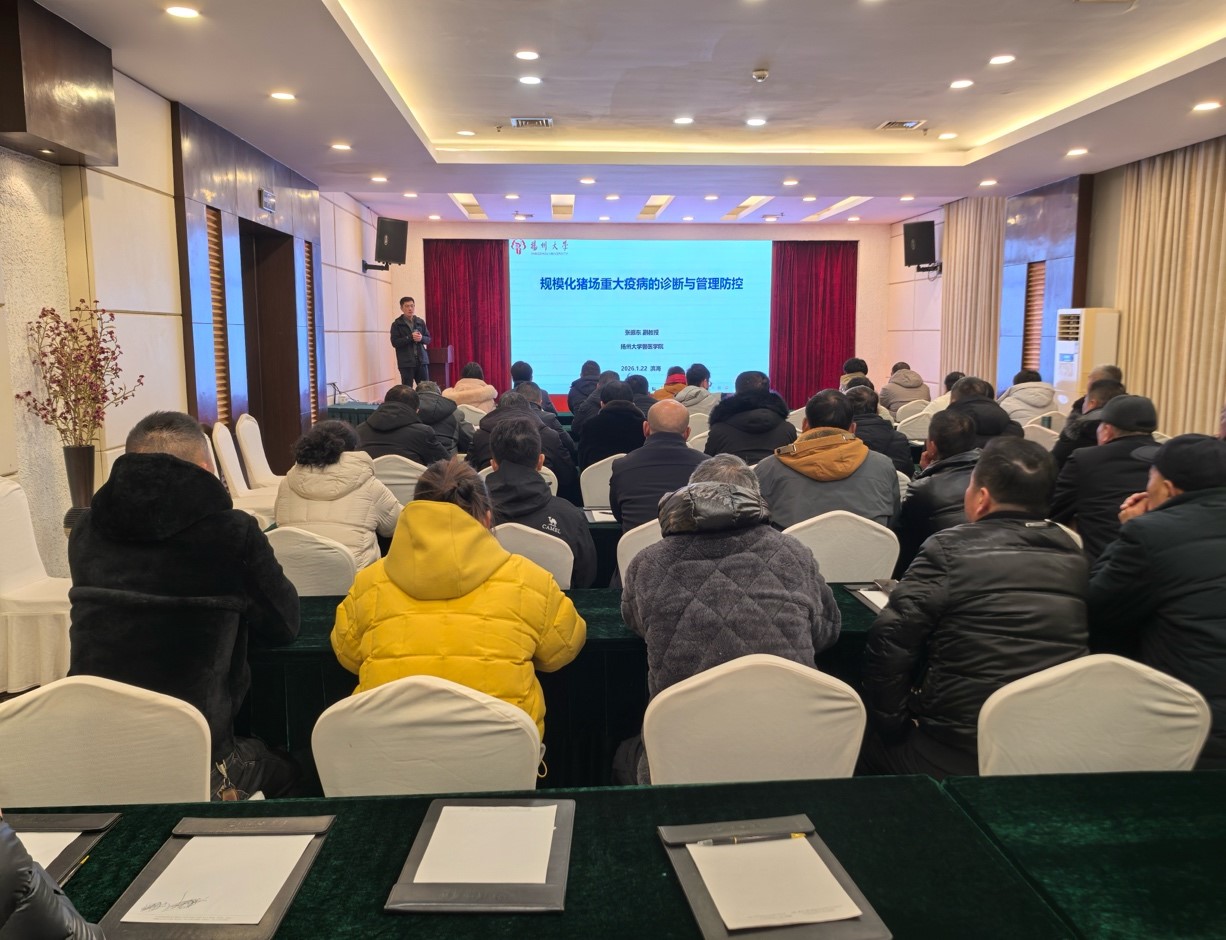1月22日,江苏省农业科学院亚夫科技服务项目“国家级非洲猪瘟无疫小区协同建设与重要猪病防控技术示范推广”培训会在盐城滨海县召开。本次培训会由免疫所主办,盐城市、滨海县畜牧兽医站协办。亚夫科技服务团队成员、滨海县及各镇、乡兽医防疫人员和相关生猪养殖户等70余人参加培训。