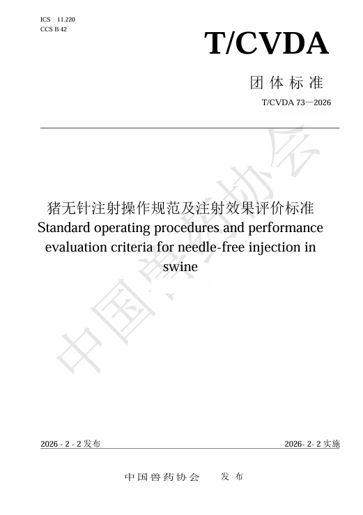 2026年2月2日,由免疫所动物疫苗制剂工程创新团队牵头编制的中国兽药协会团体标准《猪无针注射操作规范及注射效果评价标准》正式发布并实施。